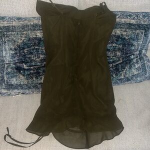 Chic olive mini dress perfect for any date night or night out. It’s a sheer lined olive green mini dress that has side rouching that allows to lengthen or shorten the dress to your desire.