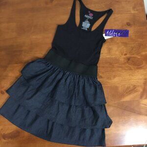 Top of dress is black racer back style.