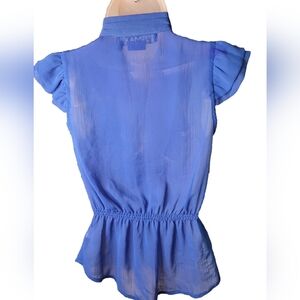 Miley Cyrus & Max Azria Blue Ruffled Buttoned Ruffled Front Blouse. Sz S