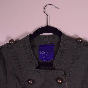 Miley Cyrus Max Azria Junior's Cotton Olive Green Zip Up Military Jacket Size M