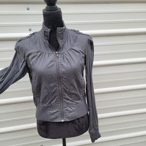 Miley Cyrus Max Azria Juniors Sz L Jacket Zip Lightweight Casual Gray Pockets