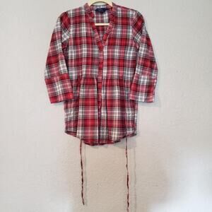Button down plaid shirt from Miley Cyrus collaboration with Max Azria. 3/4 sleeves with a tie waist. V neck with no collar. Great condition.