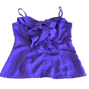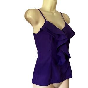 Purple blouse with ruffle front, adjustable spaghetti straps and exposed back zipper
