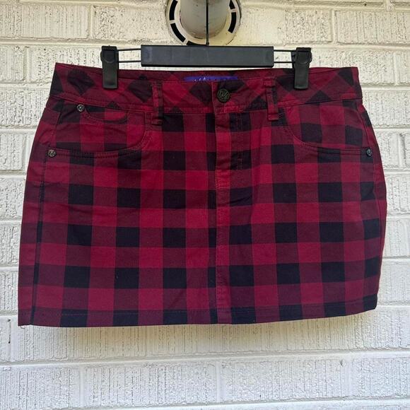 Miley Cyrus Max Azria Y2K Red Black Buffalo Mini Skirt