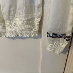 Miley Cyrus Sheer Blouse Elastic Neck Cuffs Waist Embroidered V-neck Tie Size L