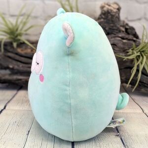 Meet Miley, the adorable 8" teal llama Squishmallow, perfect for snuggling and cuddling! This sweet plush toy is made of ultra-soft, marshmallow-like material, making her the ideal companion for kids and adults alike. Miley's closed eyes and peaceful expression invite relaxation and comfort, while her sparkly ears add a touch of whimsy.