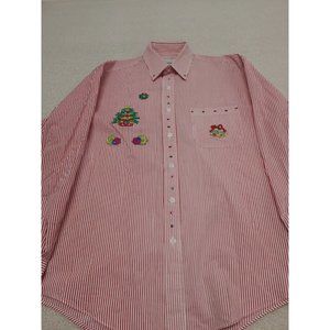 Mili Designs Button Up Shirt Women's M Christmas Embroidered  Red Striped