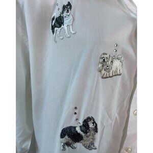 Mili Designs White Button-Up Shirt W/ Embroidered Dogs & Rhinestone Collar Sz 18