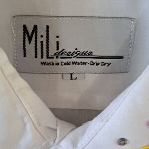 Mili Designs Women's Large White Long Sleeve Button Up Shirt Embroidered Floral