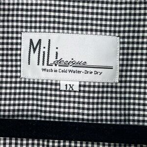Mili Designs Womens Plus 1X Button Up Shirt Black White Dog Embroidered Gingham