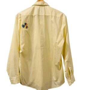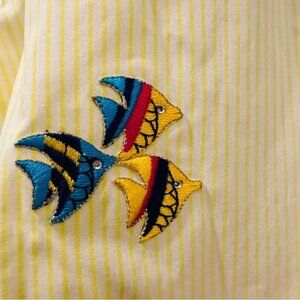 Mili Designs Yellow Striped Button-Up Shirt Embroidered Fish Rhinestones Medium