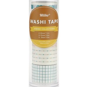 -19 uniquely designed 10m(32ft) tapes per set, including three width 40mm/1.57", two width 30mm/1.18", ten width 15mm/0.59" and four width 8mm Washi tapes.