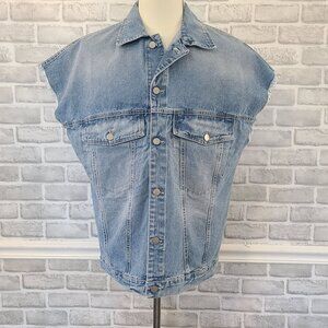 Milio Milano Italy Denim Vest Cut Off Sleeve Biker Trucker Grunge NEW XL Button