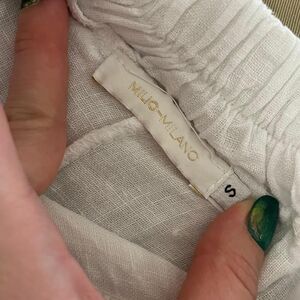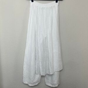 Milio Milano White Linen Wide Leg Layered Tunic Skirt Pants Elastic Italy Sz S