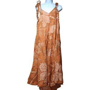 Lightweight and breezy, this Milio-Milano women’s jumpsuit is crafted from 100% linen in a warm terracotta brown floral pattern. Designed with extra wide-leg pants, adjustable tie-shoulder straps, and slash pockets, it’s perfect for effortless bohemian style.