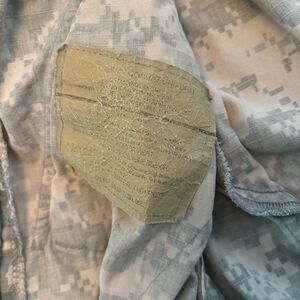 This is a military combat uniform jacket with many practical uses ! It has two front pockets in the jacket, and fitted with two additional pockets, one on each sleeve respectively. It takes the use of a Velcro system shown in pictures. This Jacket also does have a broken zipper. It is still on the jacket, but the right side of the zipper has been squished to the point where it cannot fit the zipper and go up and down. Easily fixable ! It is a size small, but fits a size medium. Previously owned.