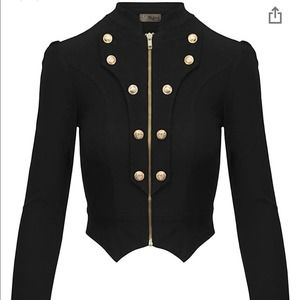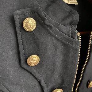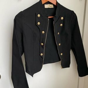 New without tags Black Hybrid & Company Women's Military Crop Stretch Gold Zip-Up Blazer Jacket. Size small