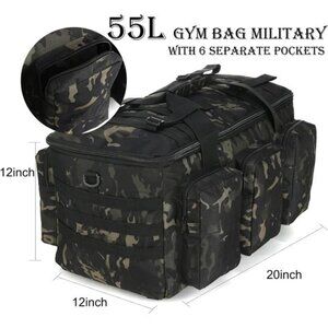 🧿【Outstanding Structure】The 55L gym bag measures 20" x 12" x 12". This travel bag with a large compartment and 6 separate pockets. Main compartment may be used in its entirety or be divided into 3 areas, built-in four small pockets and pen slot.