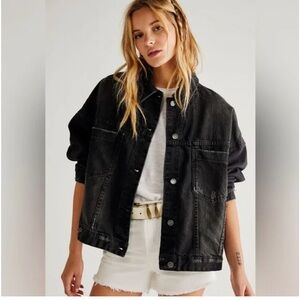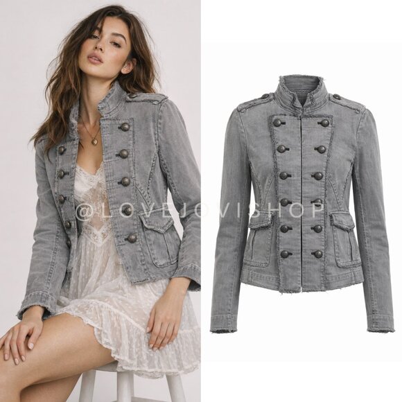 Military Femme | Free People Denim Captains Blazer in Deep Grey | Pewter | Sz XS
