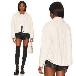 This Free People military-inspired captain’s blazer blends classic utility details with a lived-in denim texture and soft, feminine energy. The deep grey tone with antique pewter hardware is a perfect soft neutral for layering over coquette or dreamy romantic looks. Structured enough to elevate denim and relaxed enough for dresses and shorts, this piece is the spring essential that will give you that bohemian polish straight from the original retail release.