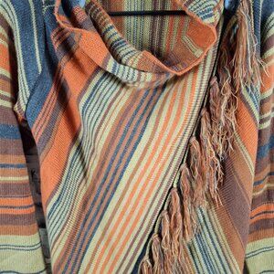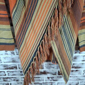 Military Hippie Small Cardigan Sweater Poncho Orange Brown Stripes Boho
