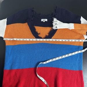 Military Hippie v-neck color block frayed hem sweater size large