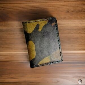 Military Inspired Hand Crafted Italian Leather Tri-fold Card Wallet (Camouflage)