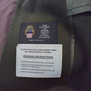 Size 37R. Contact for measurements. Green. Has pockets and belt. Missing pin on top shoulder.