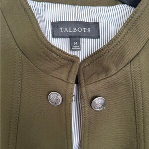 Vintage dark olive jacket by Talbots. Features a structured design with button details and hook and eye closure