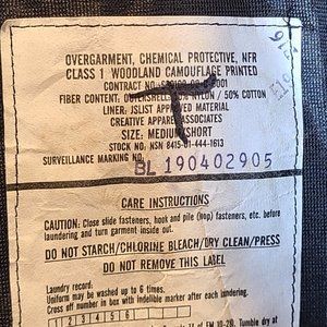 Military Overall Pant Woodland Camo Cargo Chemical Protective NFR Mens Medium