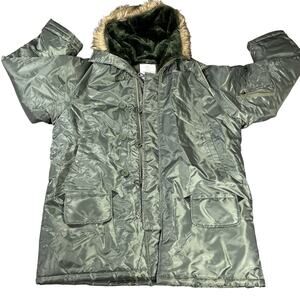 Military Parka Extreme Cold Weather Mens XXL Dark Green Type N-3B USAF Fur EUC