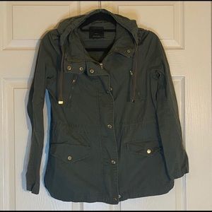 EUC. Military green jacket with gold buttons and drawstring so that you can since it in at the waist.