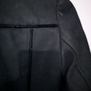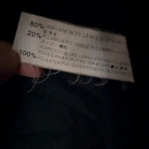 marked s but fits like an xs. at least 15 years old. made in Morocco. outer is 80% wool. a couple of the buttons are loose but that's an easy fix.