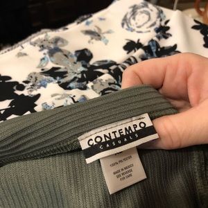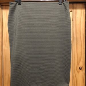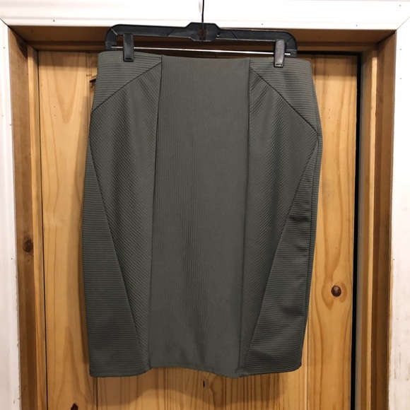 Nice military green ribbed stretchy skirt. Very comfortable. This skirt goes just below my knees so is prob 24” or 25”
