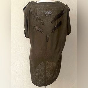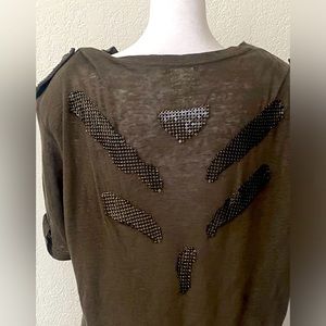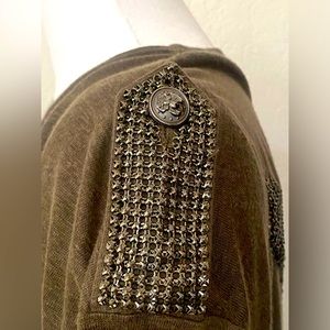 Military inspired Pierre Balmain Olive green T-shirt with Chain mail details