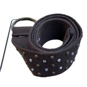 Very cool military style loop belt in black, adorned with a mix of clear and metal studs. Minimalistic with an Urban feel. Cotton in EUC. 46” long and 2” wide. Tag was cut off.