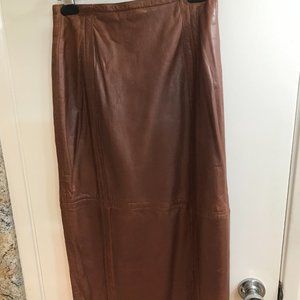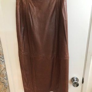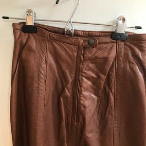 EUC. beautiful chocolate brown leather skirt, size 5/6
