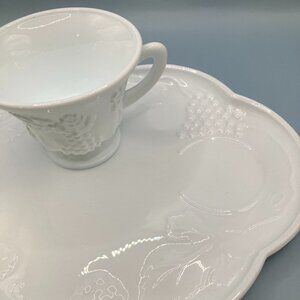 Milk Glass Luncheon Snack Set Plate and Cup Vintage Indiana Glass Harvest Grape