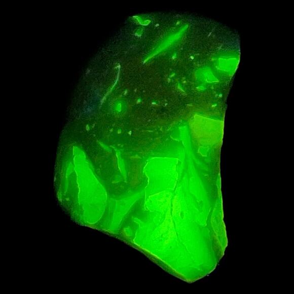 UV reactive photo is taken with a 365 nm UV light in a dark photography box. Please note that manganese will NOT glow under a 395nm light - a 365nm light is requred for manganese.