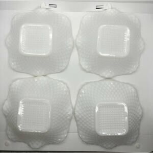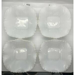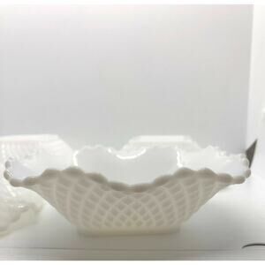 Milk Glass Square Candy Dish Bowl Diamond Pattern Ruffled Edge Set of 4