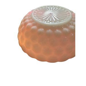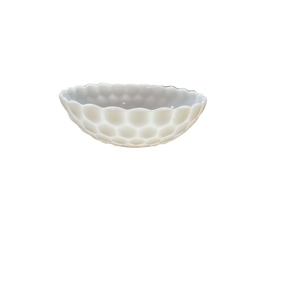 So many uses for this . It can coordinate with any theme. Use it has flower center peice, candy dish, serving bowl, or turn it upside down and put some lights in it then put some tape on top or it to secure another milk glass plate and use it as a cake plate serving stand. Find 2 of these same bowls and tape the bowl on top for temporary secure to make a taller flower centerpiece.