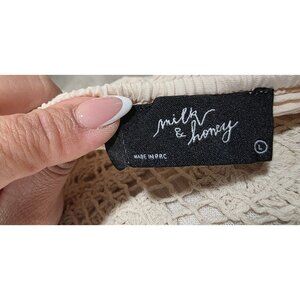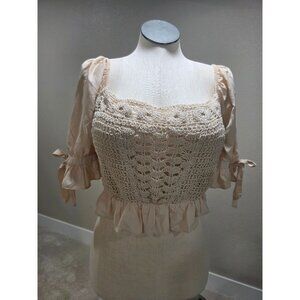 Milk & Honey Beige Crochet Lace Blouse With Puff Sleeves & Tie Back L