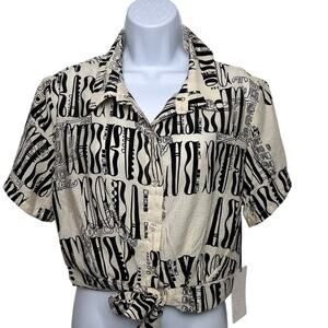 Milk + Honey Black and White Patterned Button-Up Shirt