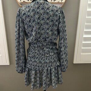 Milk & Honey Dress Mini Smocked Ruffle Long Sleeve Blue Floral SZS Cottage Boho