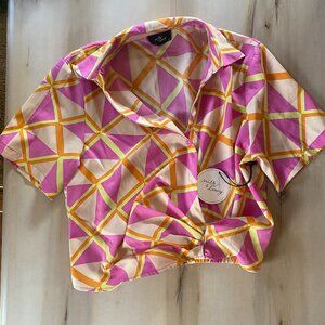 Milk & Honey Geometric Retro Cropped Short Sleeve NWT Colorful Blouse