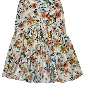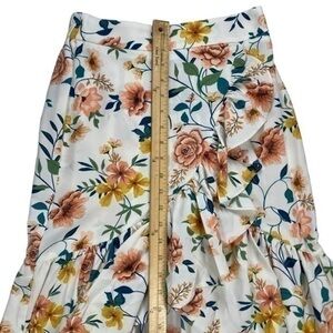 - Description: Milk & Honey Ruffle Hi Low Maxi Skirt Sz S Floral Elastic Waist Boho Summer