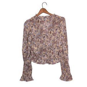 Milk & Honey S Brown Ruffle Open Front Lace Up Smocked Sleeve Festival Crop Top