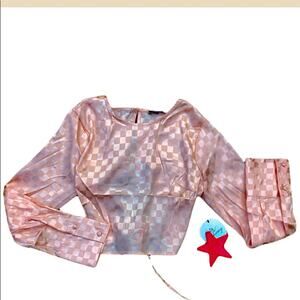 Milk & Honey Satin Blush Checkered Wrap Top Size Medium