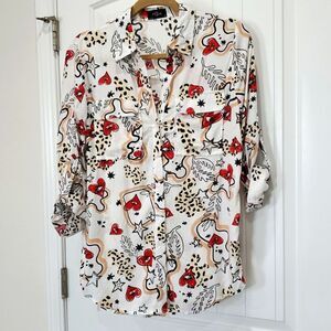 Milk & Honey ladies Heart abstract print button down Size Medium