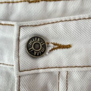 Milk It wide leg jeans in ivory and black with chain detail.